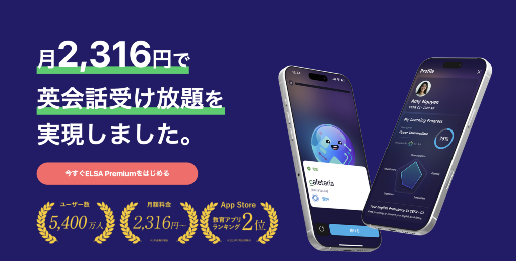 ELSA Speakは、AIによる発音解析に特化した英語学習アプリです。 音素レベルで発音をチェックし、どこをどう直せばよいかを具体的に示す点が特徴です。 スピーキング全体よりも、発音の精度を高めたい人に向いた設計となっています。