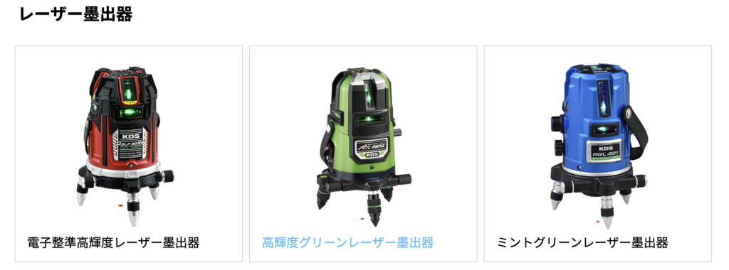 TAJIMAはレーザー墨出し器の製品カテゴリを用意しており、用途やシリーズで情報を追いやすい構成です。現場での利用を前提に、必要なライン構成やアクセサリー運用を含めて検討したい人に向きます。比較の際は、屋外・明るい場所での視認性の考え方(そのまま目視でいけるのか、受光器前提にするのか)を先に決め、次に必要なライン(縦・横・地墨など)を決めると、シリーズの見比べがスムーズになります。また、三脚や固定具などの周辺を含めた運用を想定すると、導入後の手間が減りやすいです。