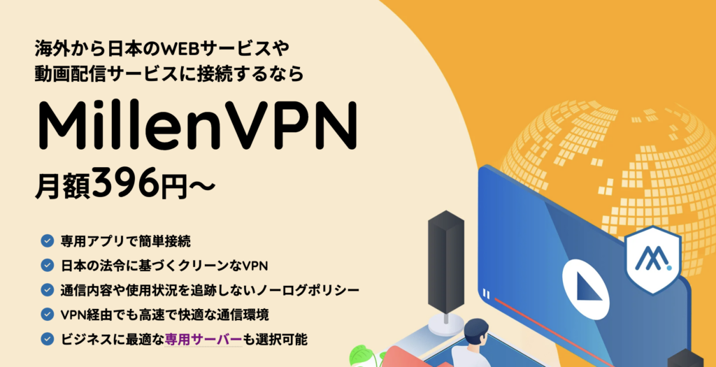 MillenVPNは、日本語サポートを重視したい人に向いています。海外サービスに抵抗がある場合や、国内運営の安心感を求める人にとって検討しやすい選択肢です。