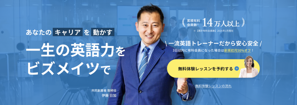 • 仕事で使う英語力を高めたいですか? YesならBizmatesが候補になります。