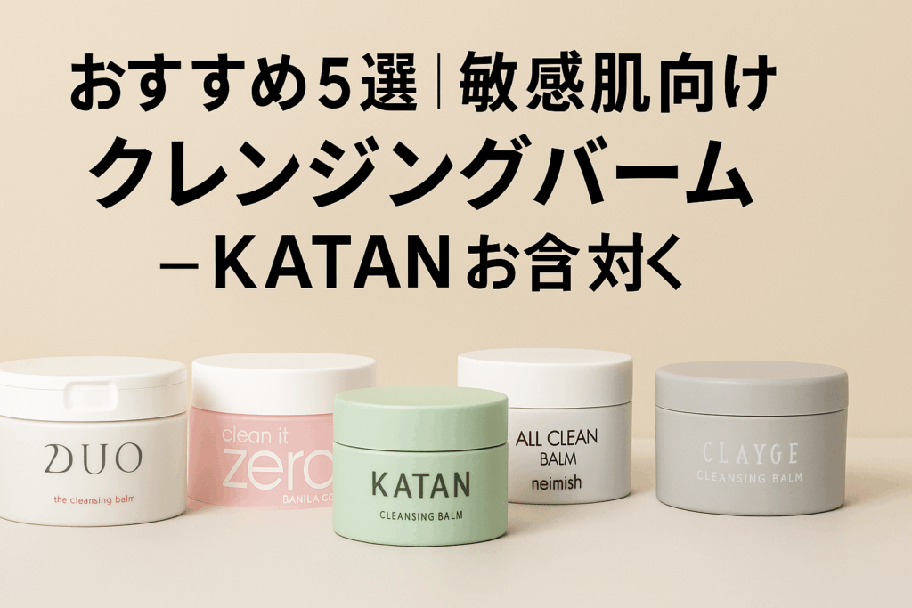 そこで本記事では、敏感肌向けにおすすめのクレンジングバームを 5つピックアップ。なかでも、自然由来・無添加・Cica成分配合で注目される KATANクレンジングバーム を中心に紹介し、それに加えて人気の実在バームブランドを4つ厳選しました。